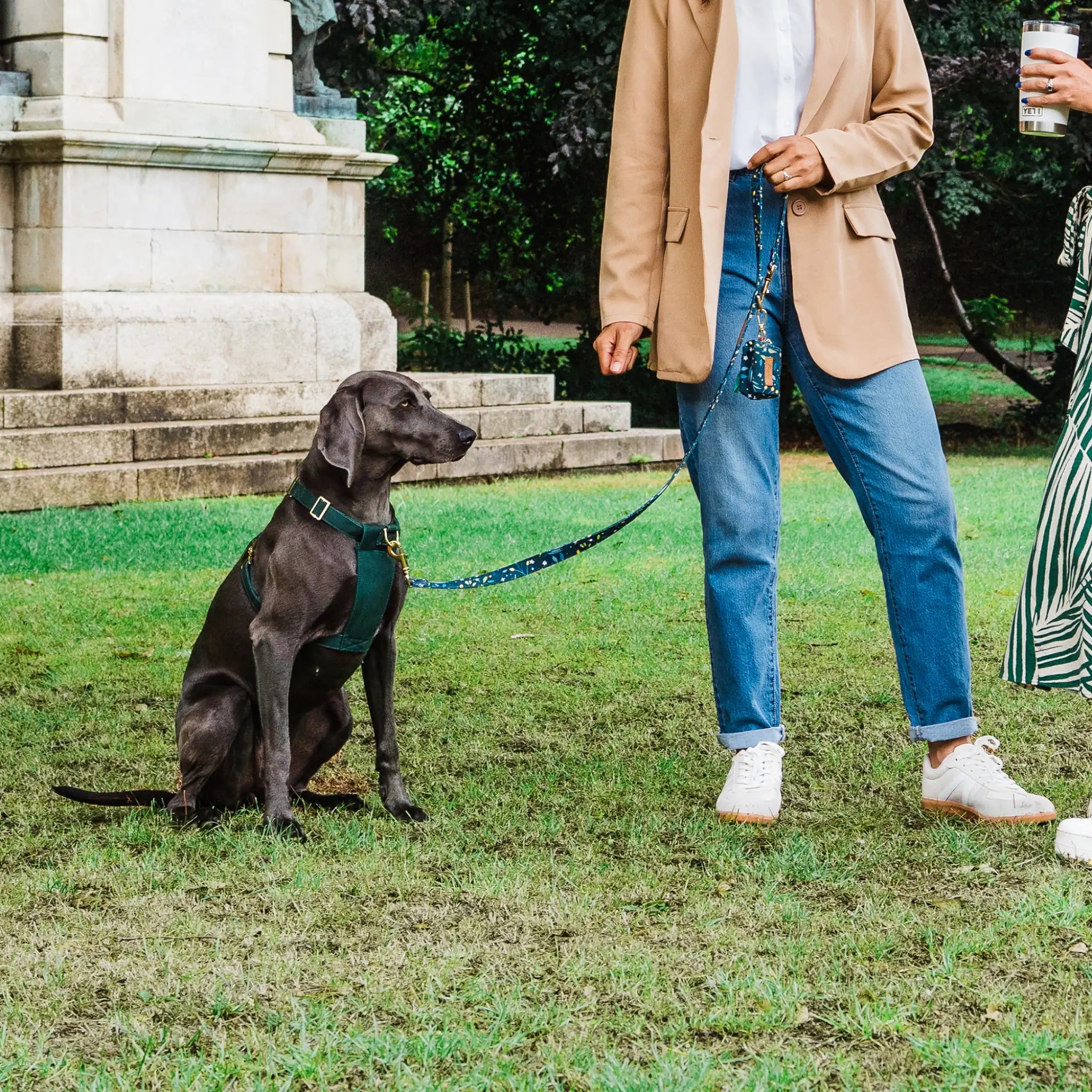 A comfortable organic cotton dog harness designed for calm city walks and everyday use.